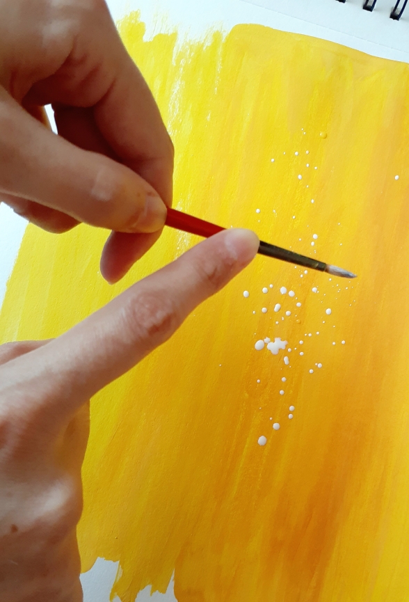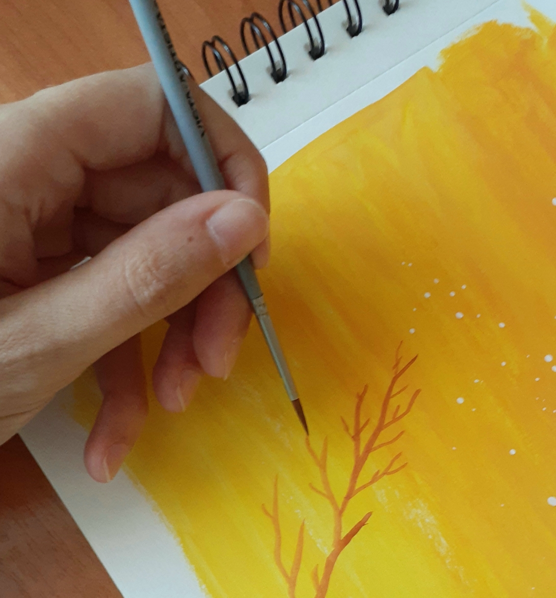Скачать файл 6 Фото-иллюстрация: Пример выполнения рисунка техникой разбрызгивания или набрызгаФайл 7: Фото-иллюстрация: пример рисования тонких линий кистью