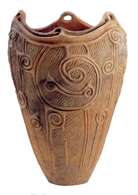 Скачать файл 2 Фото 2. Пример глиняной вазы с рисунком. Неолит. Музей Копенгагена.Используем и закрепляем навыки из первого занятия. Добавляем лепку фигурки. Осваиваем соединение деталей при помощи шликера.